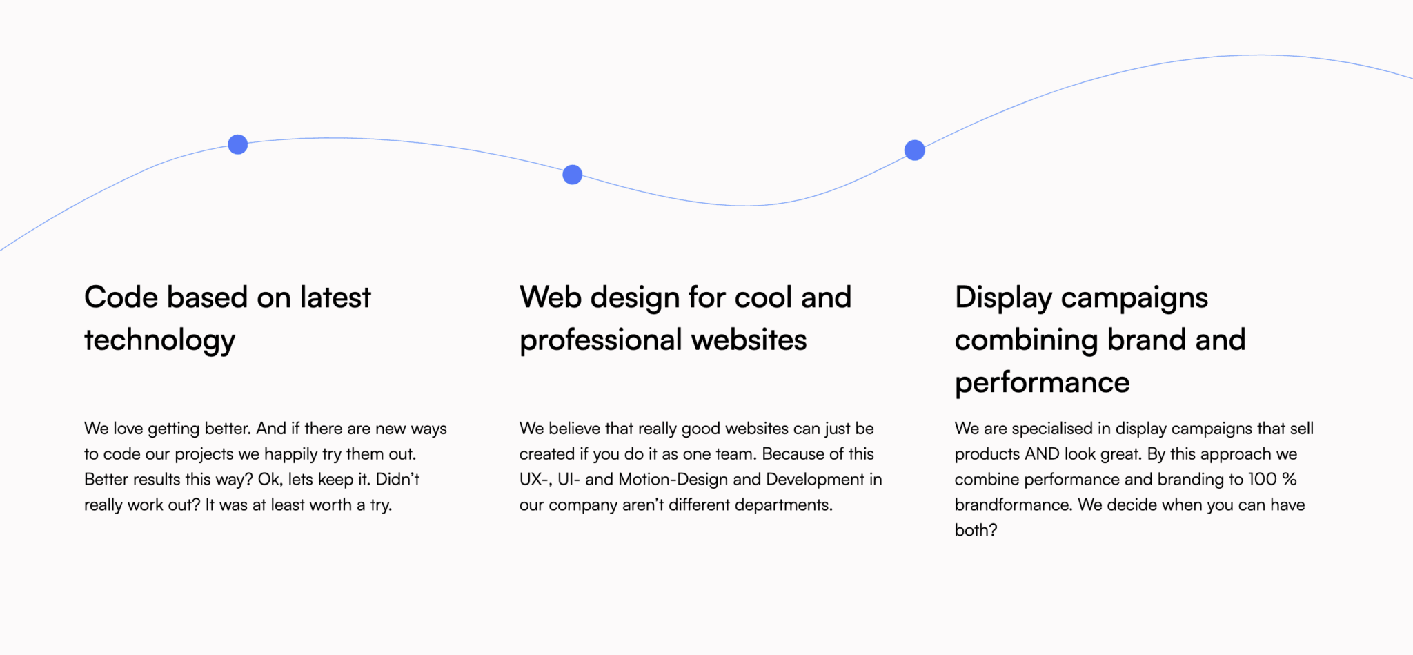 Da es sich um den Online-Auftritt eines Webentwicklungs-Teams handelt, entschied man sich für einen Auftritt ohne CMS. Zum einen, weil die Contentpflege im Code EntwicklerInnen einfach mehr liegt. Zum anderen, weil das Setup viel weniger Wartung benötigt und Möglichkeiten bei Transitions & Co bietet, die mit einem CMS nicht umsetzbar sind.