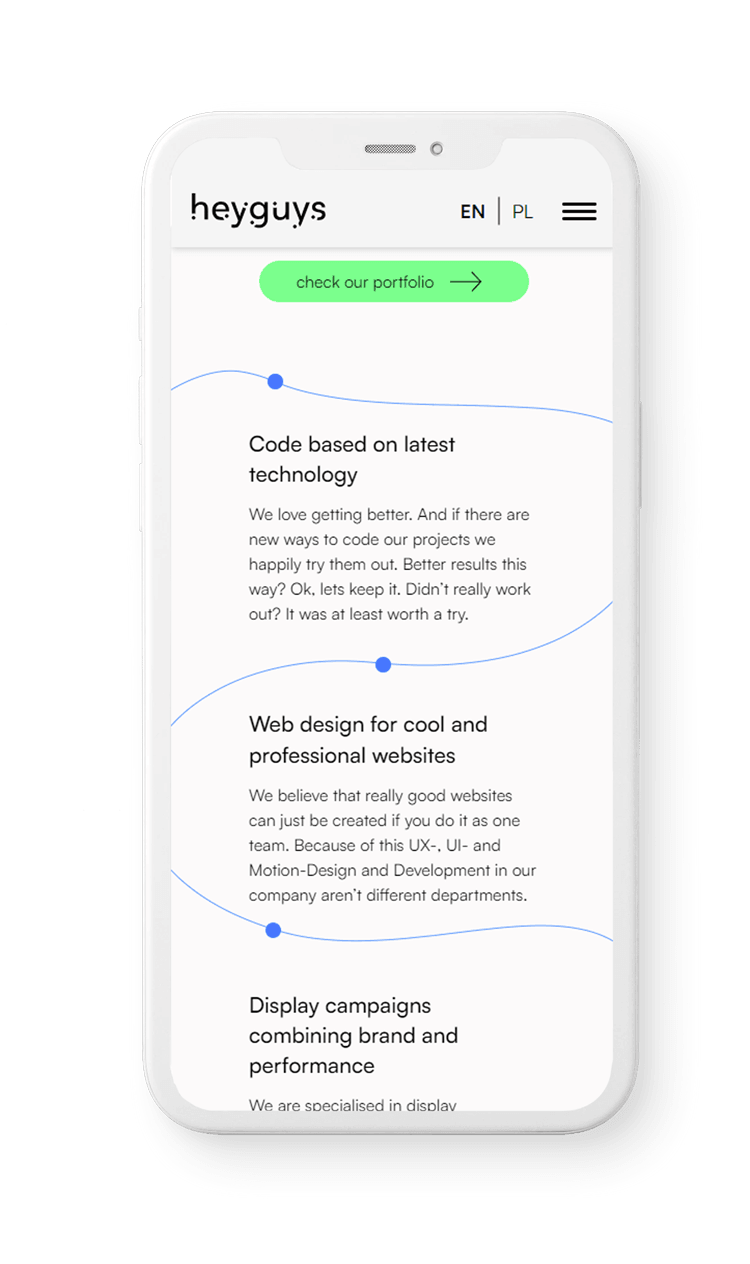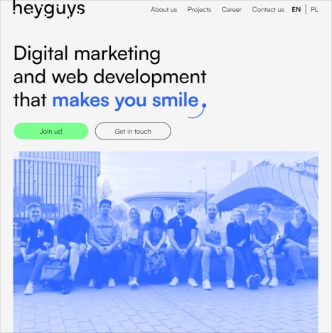 Um im Recruiting besser auf die Bedürfnisse potentieller KollegInnen eingehen zu können, entschied sich unser polnisches Office dazu, unter der Brand HeyGuys einen eigenständigen Webauftritt zu launchen, der sich zu 100 % an BewerberInnen richtet. Dafür sollte ein stimmiges Konzept und ein entsprechendes Design zuerst kreiert und dann gecoded werden.