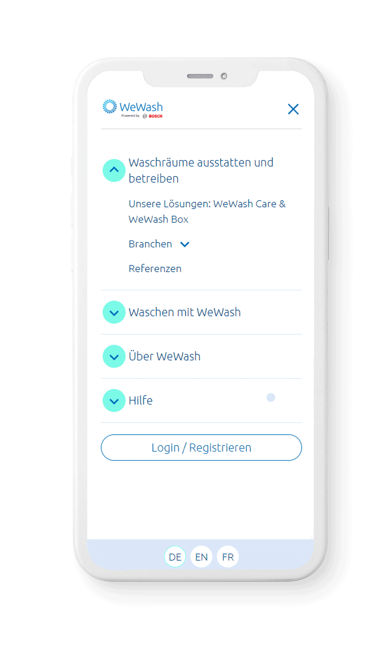 Seit dem Launch der alten Websites im Jahr 2018 hat sich bei WeWash viel getan, das Unternehmen ist gewachsen und hat neue Services und Lösungen entwickelt. Mit dem digitalen Abbilden dieser kam die alte Website aber zunehmend an ihre Grenzen. Mit einem Relaunch sollte eine neue Informationsarchitektur erarbeitet werden, die für alle Branchen im WeWash-Kundenstamm genau die richtige Ansprache bietet.